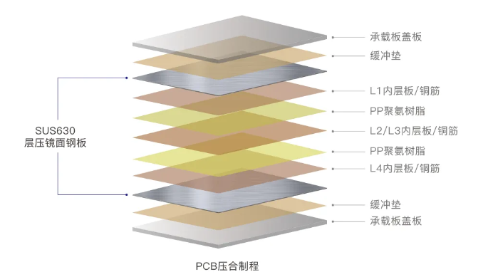 As core components of electronic products, PCBs and CCLs must possess sufficient strength and hardness to withstand physical impacts and vibrations. After undergoing solution treatment and aging treatment, SUS630 laminated mirror steel plates can achieve high strength and hardness, thereby ensuring the reliability and stability of both the circuit boards and the covering laminates. These materials are capable of withstanding the pressures and vibrations present in various external environments, ensuring that electronic products function properly under all operating conditions.